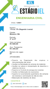 Oportunidade de Estágio! Sem categoria 29 de julho de 2024. Visualizações: 253. Última modificação: 29/07/2024 09:17:57