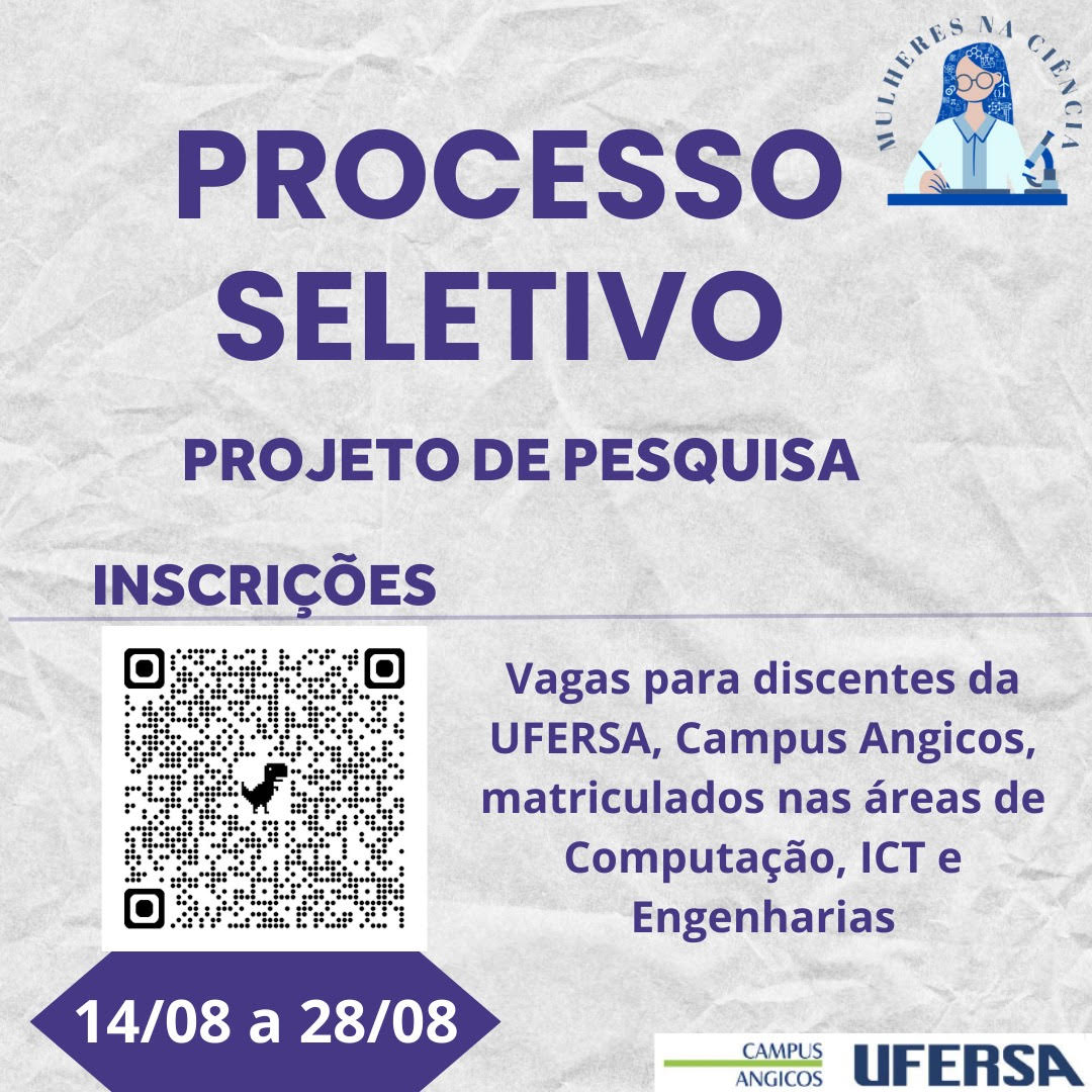 Para mais informações acesse: https://angicos.ufersa.edu.br/2024/08/13/edital-01-2024-processo-seletivo-para-chamada-de-discentes-projeto-mulheres-nas-ciencias-exatas/